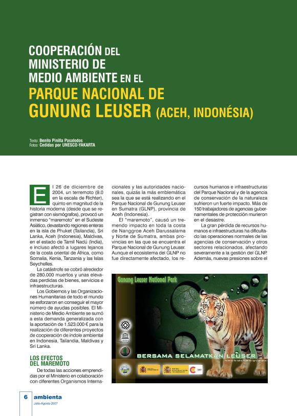 Cooperación del Ministerio de Medio Ambiente en el Parque Nacional de Gunung Leuser (Aceh,...