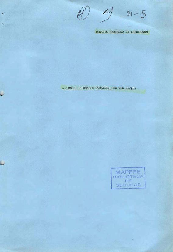 A Simple insurance strategy for the future : [paper of] the International Insurance and Risk...