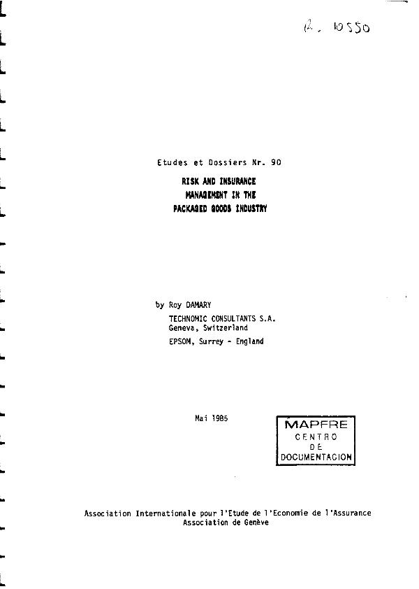 - En: Geneva papers on risk and insurance : issues and practice. - Geneva : The Geneva Association, 1976- = ISSN 1018-5895. - 01/10/1985 Tomo 10 Número 4 - 1985