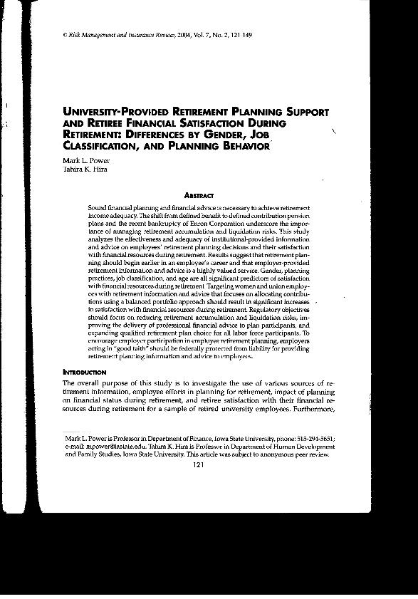 Insurance company employees' financial expertise and practices : implications on benefit...
