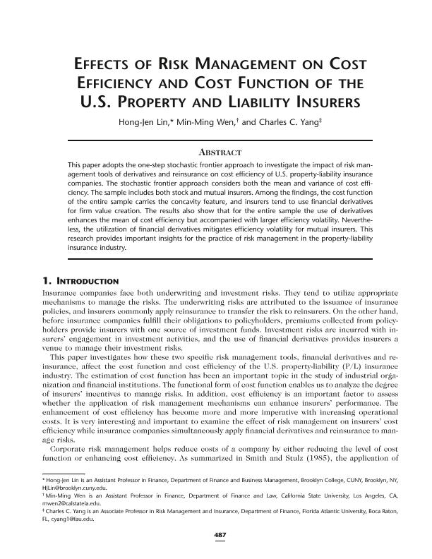 En: The Journal of risk and insurance. - Nueva York : The American Risk and Insurance Association, 1964- = ISSN 0022-4367. - 01/06/2011 Tomo 78 Número 2 - 2011