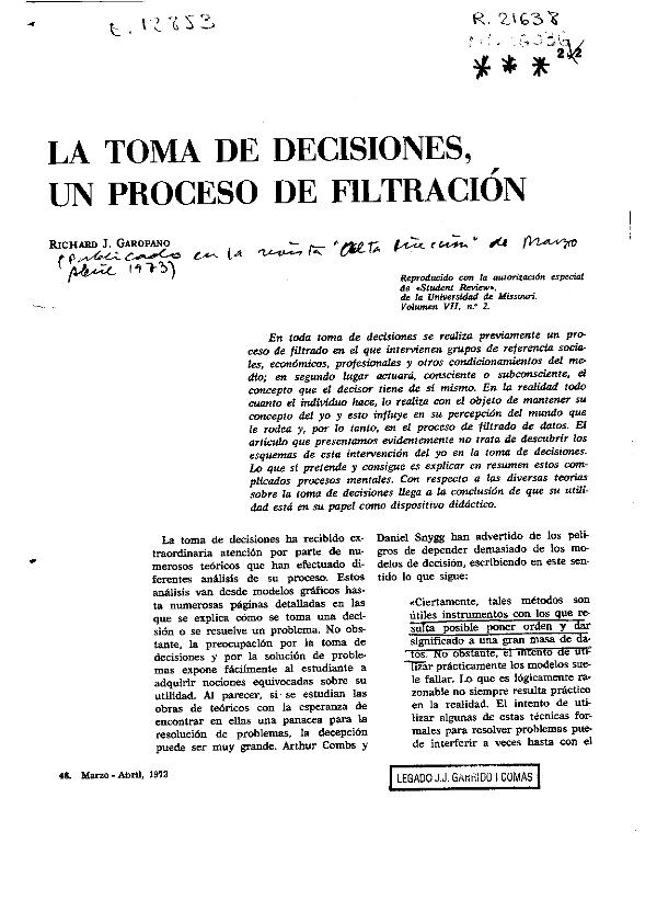 - En: Anales del Instituto de Actuarios Españoles : Colegio Profesional. - Madrid : Instituto de Actuarios Españoles, 1943-. - 01/01/1977 Número 18 - 2ª Época - 1977 , p. 51-62