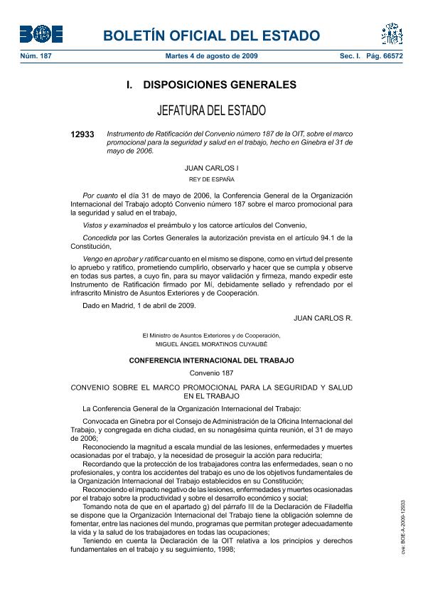 Instrumento de Ratificación del Convenio número 187 de la OIT, sobre el marco promocional para la...