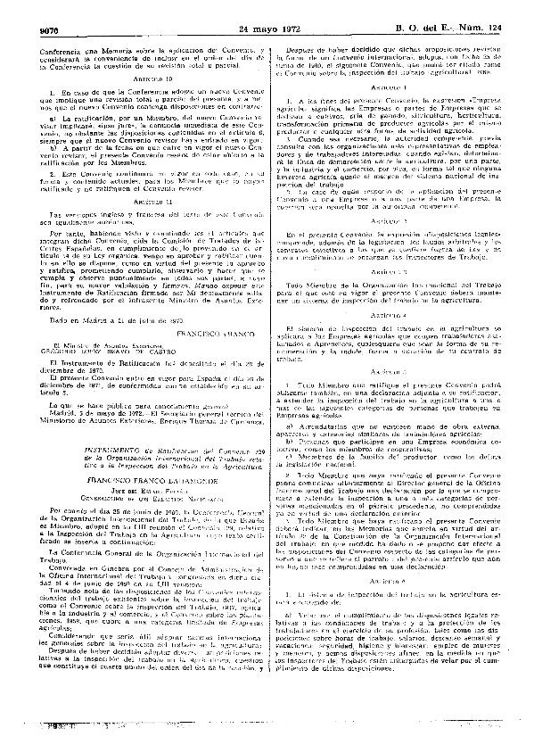 Convenio 25 junio 1969, núm. 129, ratificado por Instrumento 11 marzo 1971. Agricultura....