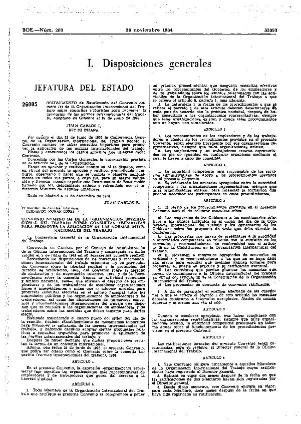 Convenio de la O.I.T. 21 junio 1976, núm. 144, ratificado por Instrumento 16 diciembre 1983....