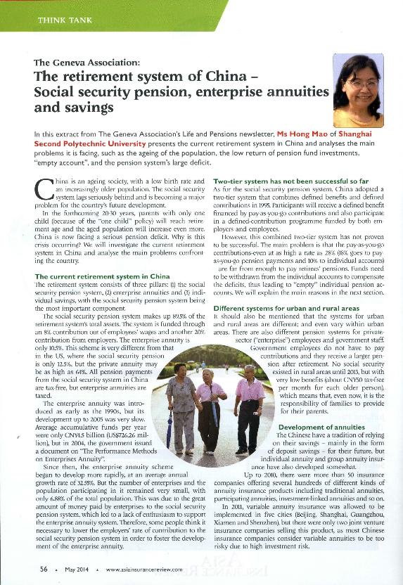 The Retirement system of China - social security pension, enterprise annuities and savings