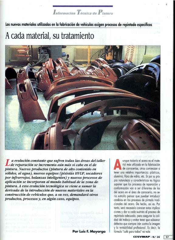 - En: CESVIMAP : revista técnica de reparación y peritación de daños en carrocería y pintura de automóviles. - Madrid : Centro de Experimentación y Seguridad Vial MAPFRE, 1992- = ISSN 1132-7103. - Número 26 1998