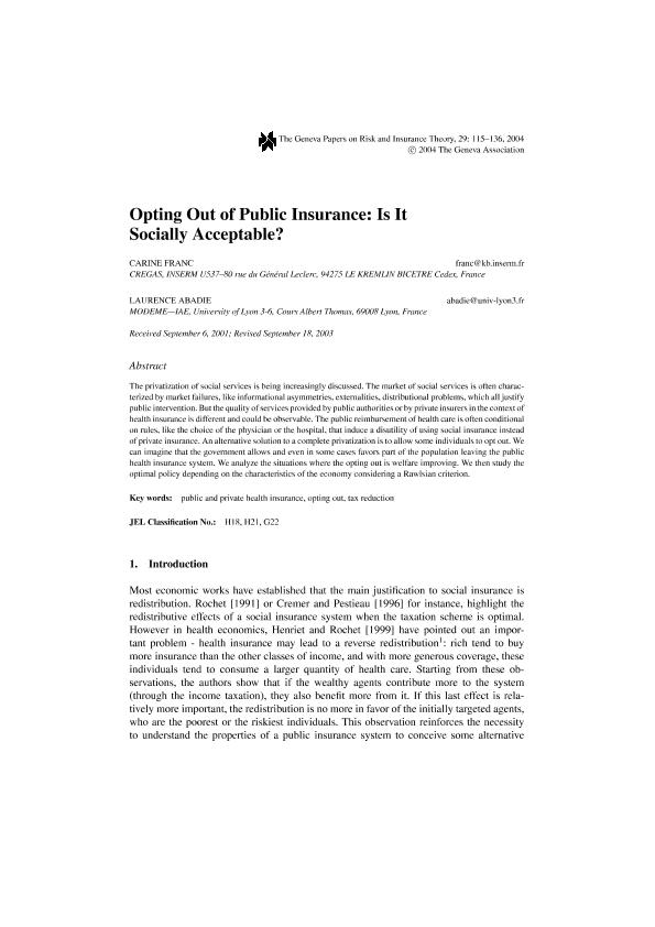 En: The Geneva Risk and Insurance Review. - The Netherlands : The Geneva Association, 1991-2010 = ISSN 0926-4957. - 01/12/2004 Número 2 29 2004 , p. 115-136