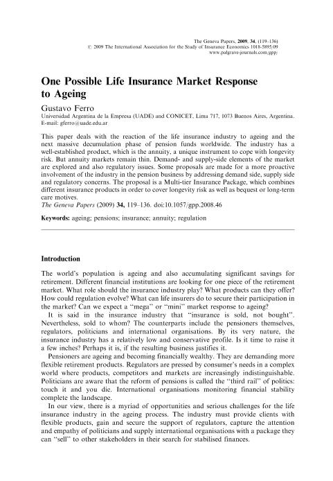 En: Geneva papers on risk and insurance : issues and practice. - Geneva : The Geneva Association, 1976- = ISSN 1018-5895. - 01/01/2009 Tomo 34 Número 1 - 2009