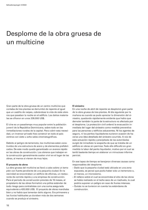 En: Schaden Spiegel : boletín de siniestros. - Munich : Münchener Rück, Munich Re Group, 1977-2011 = ISSN 0941-6595. - 01/02/2005 Número 1 2005, p. 18-22