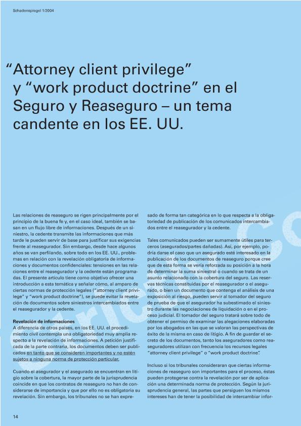 "Attorney client privilege" y "work product doctrine" en el seguro y reaseguro : un tema candente...