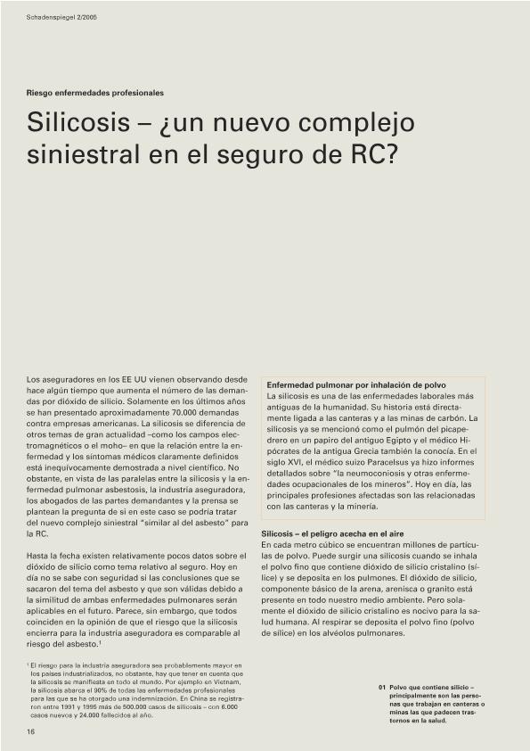Silicosis : ¿un nuevo complejo siniestral en el seguro de RC? : riesgo enfermedades profesionales