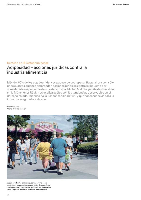 Adiposidad : acciones jurídicas contra la industria alimenticia : derecho de RC estadounidense :...