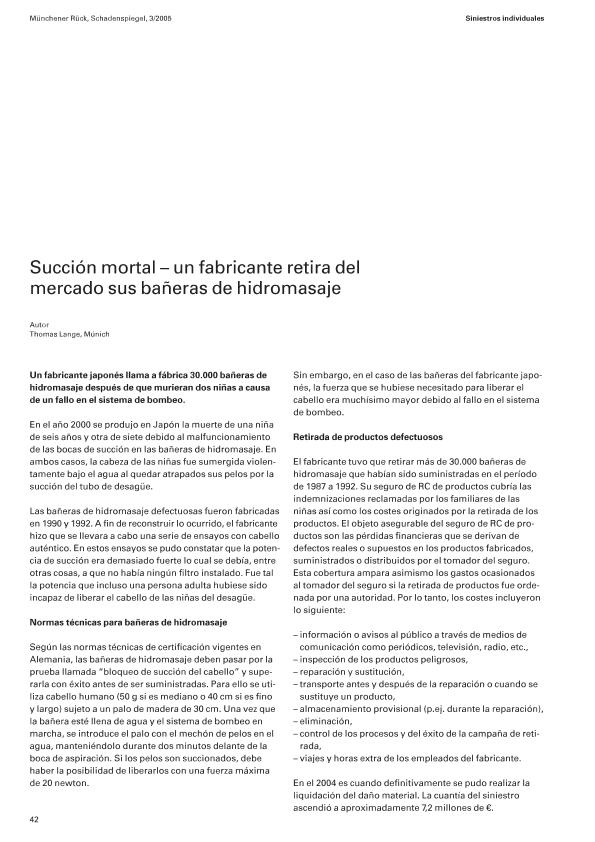 En: Schaden Spiegel : boletín de siniestros. - Munich : Münchener Rück, Munich Re Group, 1977-2011 = ISSN 0941-6595. - 30/12/2005 Número 3 2005, p. 42
