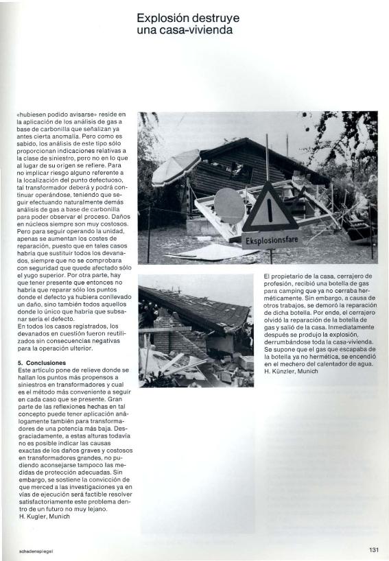 En: Schaden Spiegel : boletín de siniestros. - Munich : Münchener Rück, Munich Re Group, 1977-2011 = ISSN 0941-6595. - 01/06/1981 Tomo 1 Número 1 - 1981, p. 131