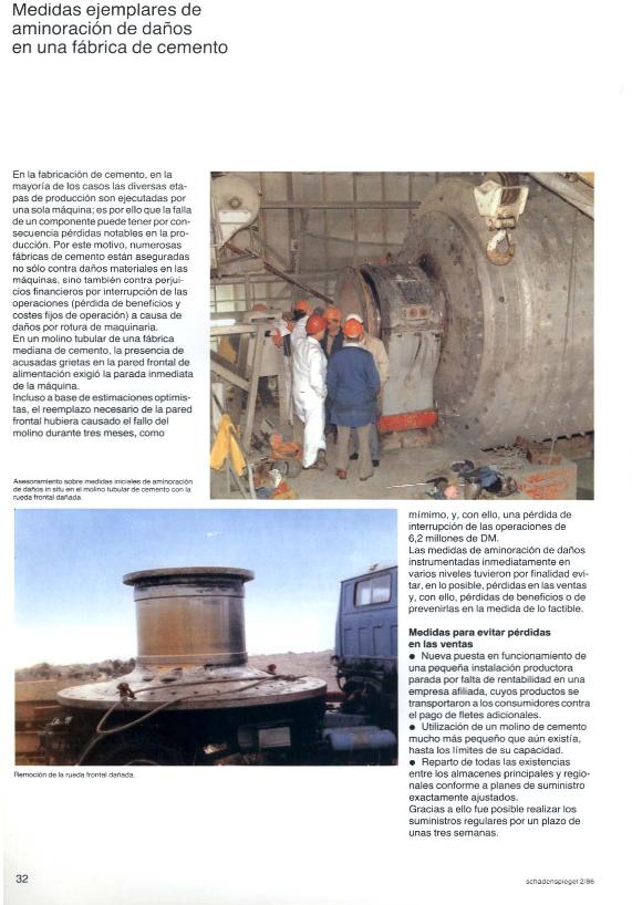 En: Schaden Spiegel : boletín de siniestros. - Munich : Münchener Rück, Munich Re Group, 1977-2011 = ISSN 0941-6595. - 01/12/1986 Tomo 1 Número 2 - 1986, p. 32-33