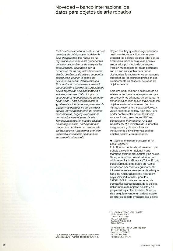 En: Schaden Spiegel : boletín de siniestros. - Munich : Münchener Rück, Munich Re Group, 1977-2011 = ISSN 0941-6595. - 01/12/1991 Tomo 1 Número 2 - 1991, p. 22-23