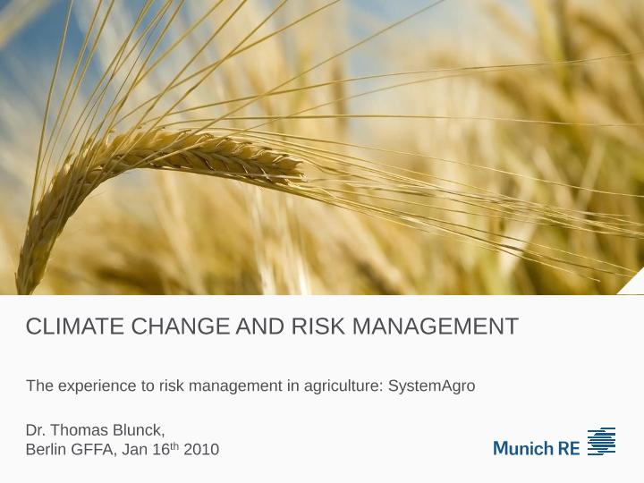 Climate change and risk management : the experience to risk management in agriculture : SystemAgro
