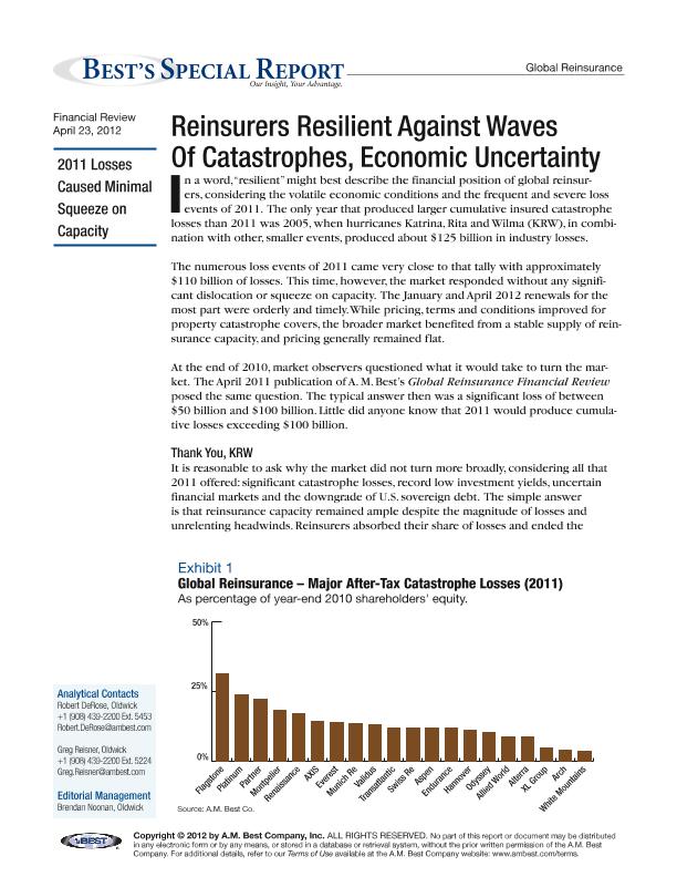 Reinsurers resilient against waves of catastrophes, economic uncertainty : special report