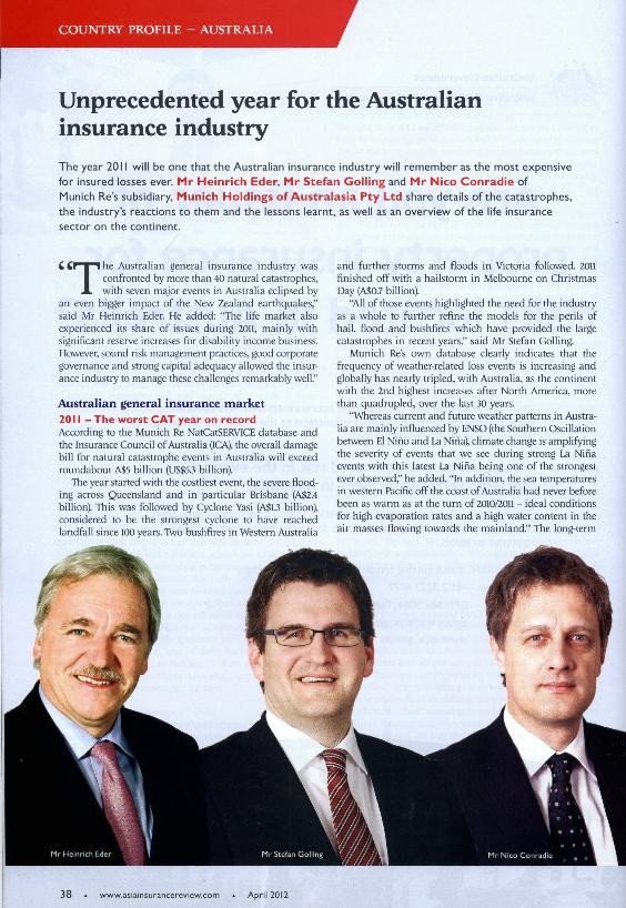 • En: Asia insurance review. - Singapore : Ins Communications Pte Ltd., 2009- = ISSN 0218-2696. - 02/04/2012 Número Abril - abril 2012 , p. 38-40