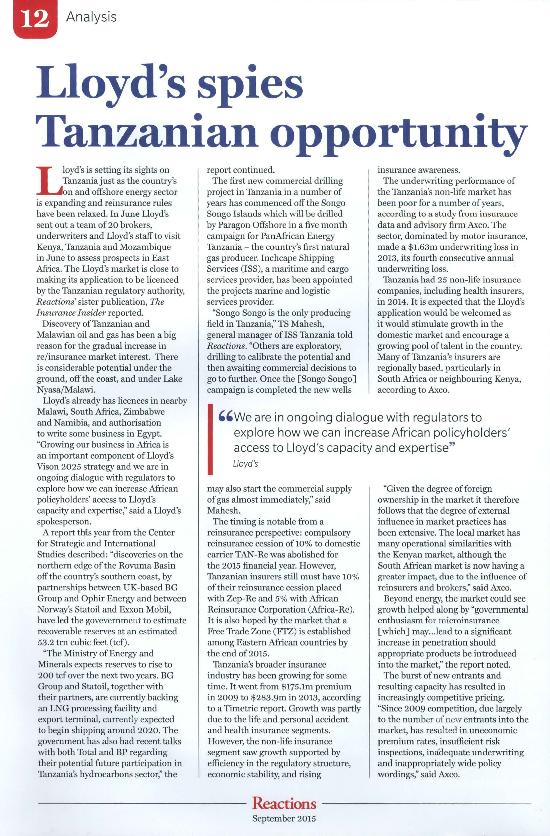 En: Reactions. - London : Euromoney Institutional Investor PLC, 1981- = ISSN 0953-5640. - 01/09/2015 Número 9 - septiembre 2015 , p. 12
