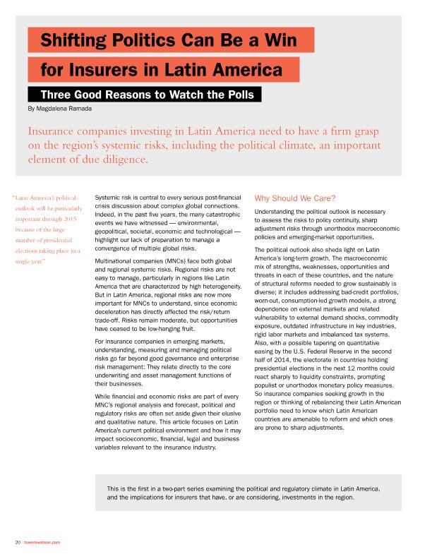 Shifting politics can be a win for insurers in Latin America : three good reasons to watch the polls