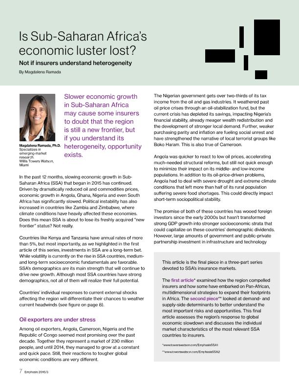 Is Sub-Saharan Africa's economic luster lost? : not if insurers understand heterogeneity