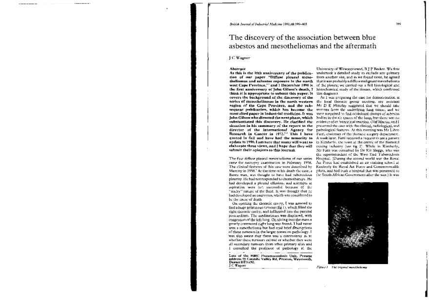 The Discovery of the association between blue asbestos and mesotheliomas and the aftermath