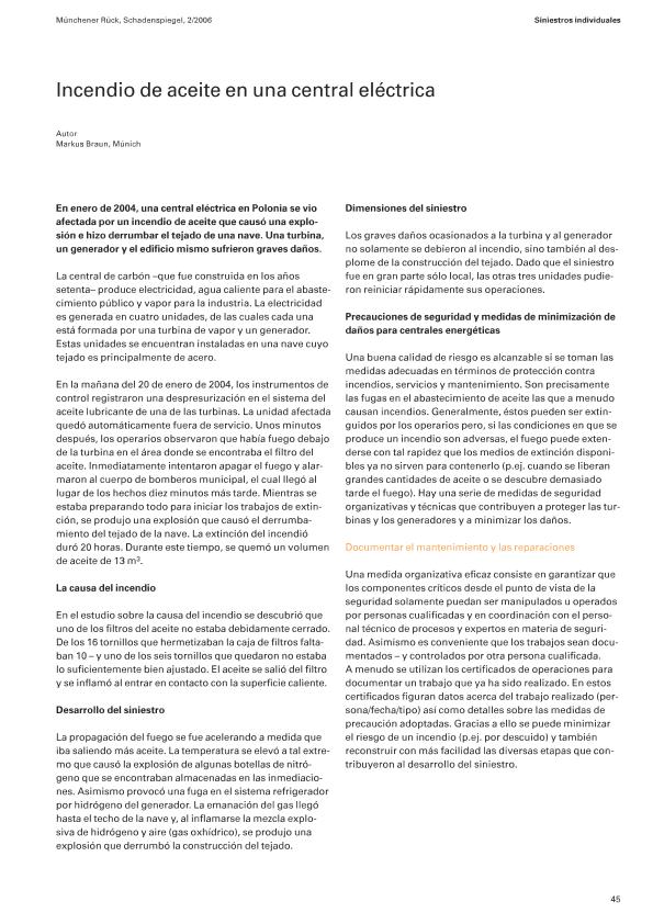 En: Schaden Spiegel : boletín de siniestros. - Munich : Münchener Rück, Munich Re Group, 1977-2011 = ISSN 0941-6595. - 01/08/2006 Tomo Número 2 - 2006, p. 45-46