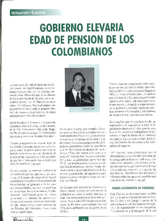 - En: Revista Fasecolda. - Bogotá : Unión de Aseguradoras Colombianos, 1979- = ISSN 0120-1972. - 01/10/1997 Número 86 - 1997 , p. 12-13
