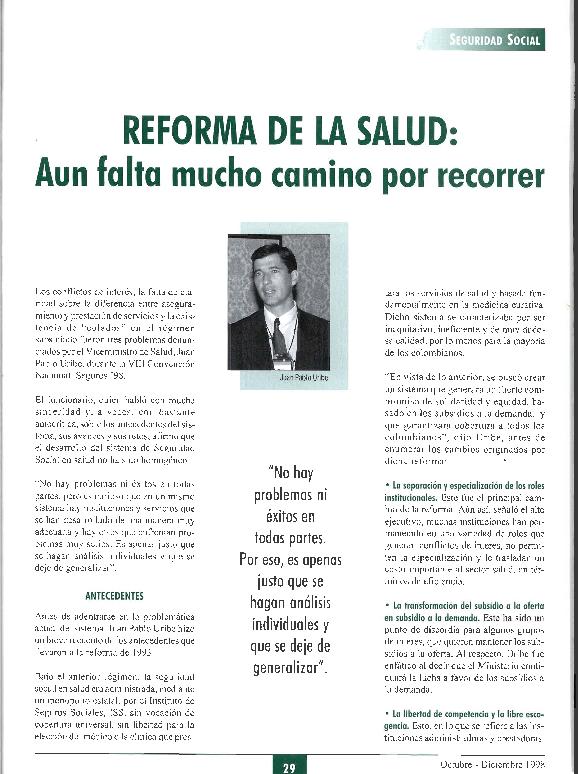- En: Revista Fasecolda. - Bogotá : Unión de Aseguradoras Colombianos, 1979- = ISSN 0120-1972. - 01/10/1998 Número 90 - 1998 , p. 24-27