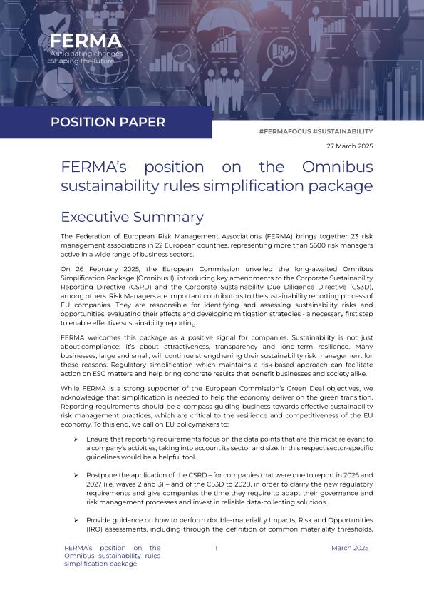 Implementation of the CSRD : first year lessons from risk managers' perspective