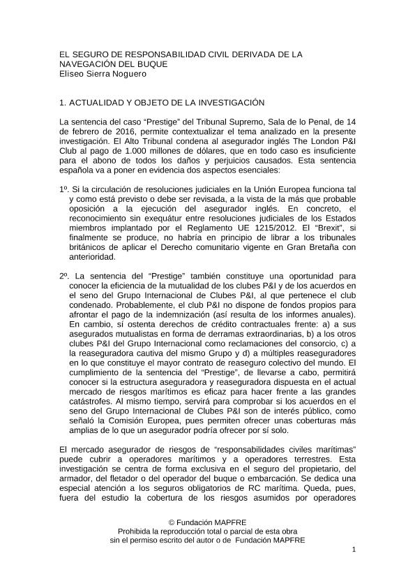 El Seguro de responsabilidad civil derivada de la navegación de buques : especial referencia a los seguros obligatorios