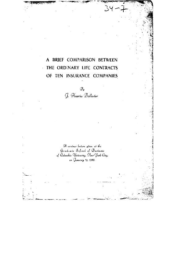 A Brief comparison between the ordinary life contracts of ten insurance companies