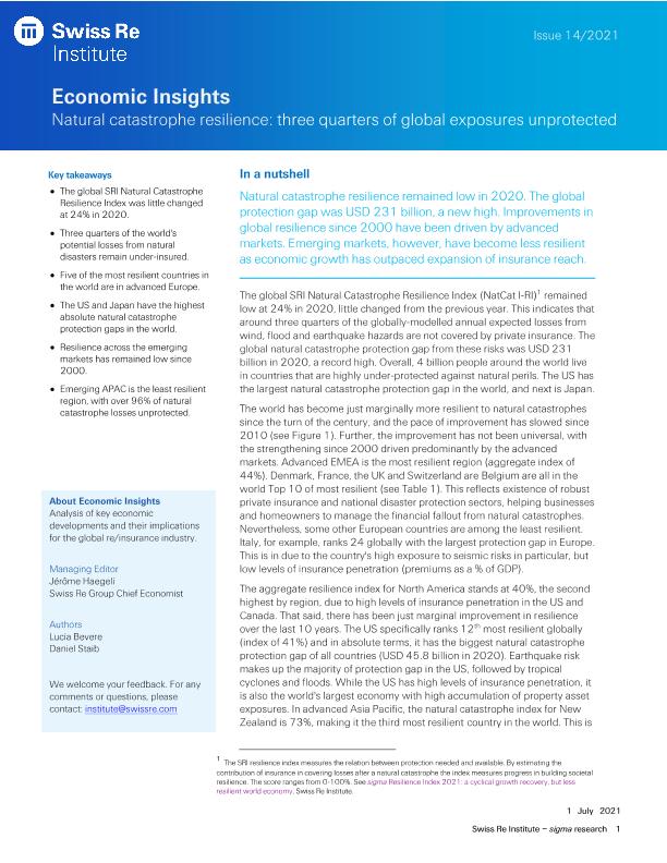 Natural catastrophe resilience : three quarters of global exposure unprotected