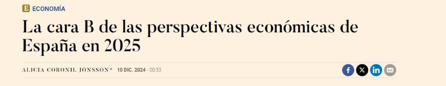Título: La Cara B de las perspectivas económicas de España en 2025Autor: Coronil Jónsson, Alicia