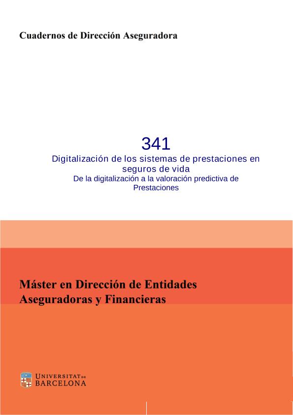 Sección: Documentos electrónicosTítulo: Digitalización de los sistemas de prestaciones en seguros de vida : de la digitalización a la valoración predictiva de prestaciones / Estudio realizado por : Alejandro Romero Ruiz ; Tutora : Silvia Andreu CanoAutor: Romero Ruiz, Alejandro Publicación: Barcelona : Universitat de Barcelona, 2024Descripción física: 111 pSerie: (Cuadernos de Dirección Aseguradora ; 341)Notas: Máster en Dirección de Entidades Aseguradoras y Financieras. Tesis del Máster en Dirección de Entidades Aseguradoras y Financieras. Curso 2023-2024. Tutora : Silvia Andreu CanoSumario: Esta tesis proyecta la digitalización y automatización basada en la inteligencia artificial (IA) que se ha llevado a cabo para facilitar la gestión de prestaciones "end to end" por parte de nuestros clientes. El reto era anticiparnos a sus necesidades y proporcionar un servicio más eficiente y sencillo sin olvidar el factor humano. Digitalización, autoservicio, automatización e IA permitirán dedicar tiempo de calidad a nuestros clientes, acompañarlos y gestionar sus necesidades en momentos vitales complicadosContiene: Contexto económico y asegurador: situación sector asegurador en España y a nivel internacional -- Seguros de Vida-Riesgo: características específicas de contratos de Vida-Riesgo -- Innovación en el mercado asegurador -- Modelo de digitalización de prestaciones de seguros de Vida -- Modelo predictivo de prestaciones: análisis descriptivo de las variables y modelización -- Conclusiones -- BibliografíaMateria / lugar / evento: Seguro de vidaSeguros de vida riesgoDigitalizaciónPrestacionesModelos predictivosNuevas tecnologíasCalidad de servicioTrabajos de investigaciónEspañaOtros autores: Andreu Cano, Silvia Universitat de Barcelona Serie secundaria: Trabajos Fin de Master/de Grado/Tesis doctoralesOtras clasificaciones: 341.1Derechos: In Copyright (InC)