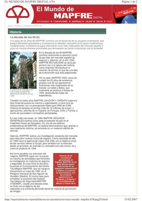 Título: MAPFRE continúa su avance : la década de los 90 (II)