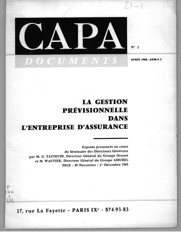 La Gestion prévisionnelle dans l'entreprise d'assurance : Exposés prononcés au cours du Séminaire des Directeurs Généraux : Nice, 29 novembre-1er décembre 1965