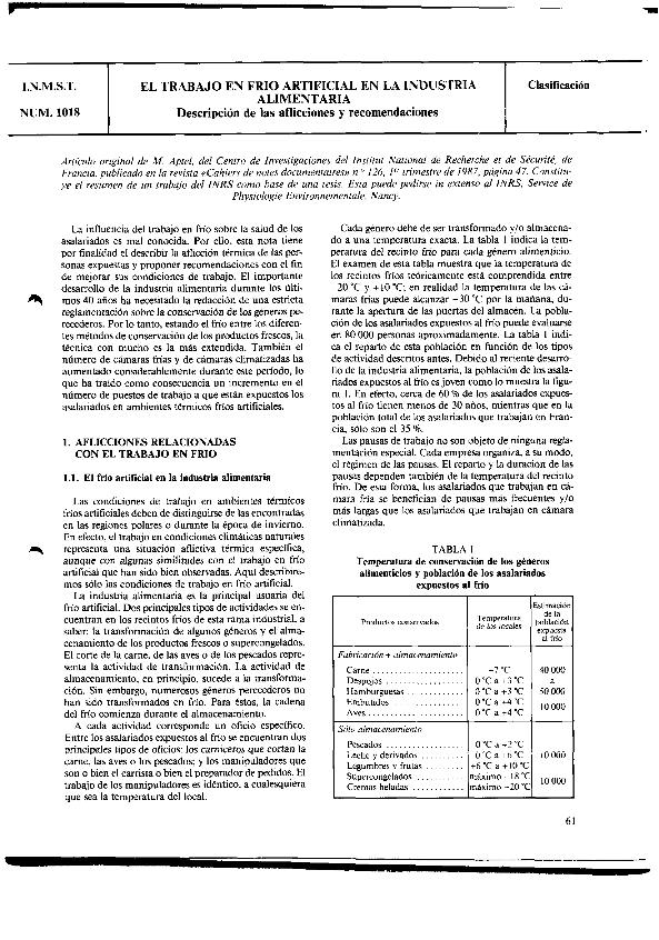 El Travail au froid artificiel dans l'industrie alimentaire : description des astreintes et...