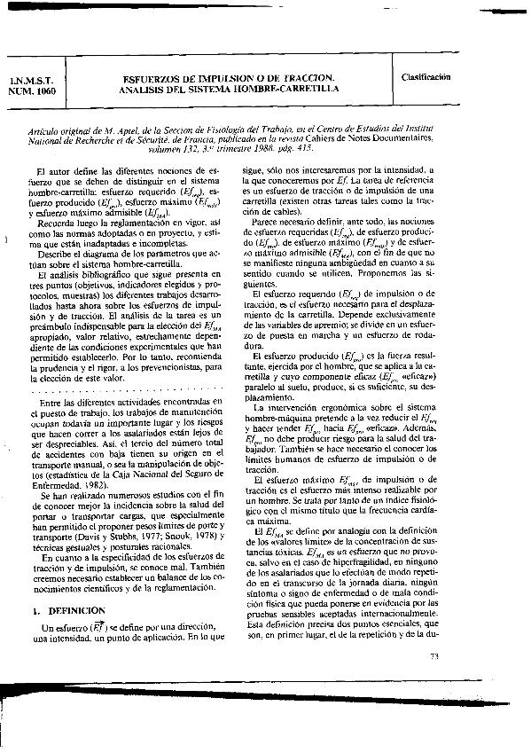 Esfuerzos de impulsión o de tracción : análisis del sistema hombre-carretilla