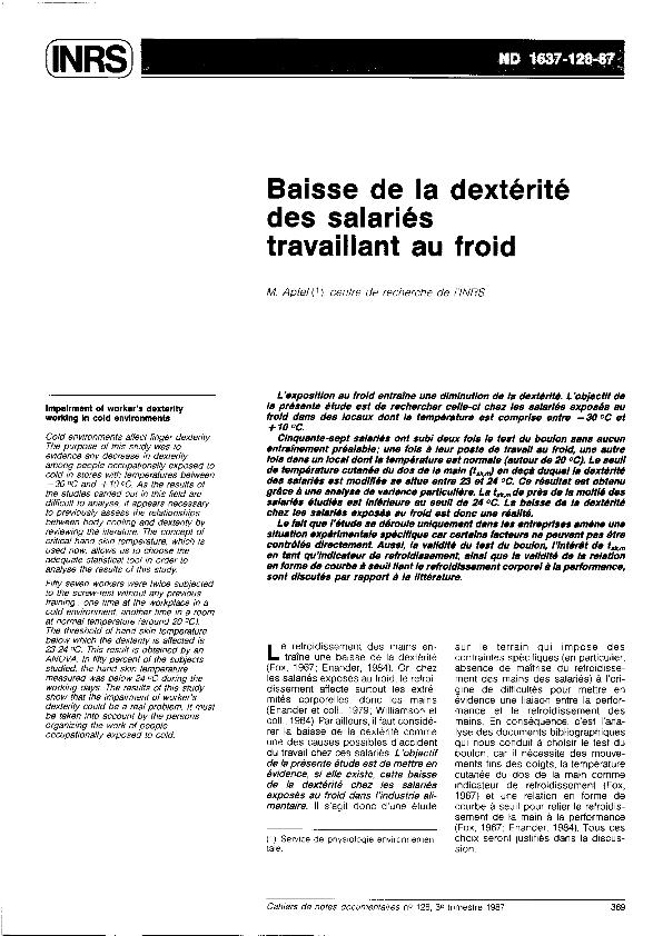 En: Cahiers de notes documentaires. - Paris. - nº 128, 3e. trimestre 1987 ; p. 369-374