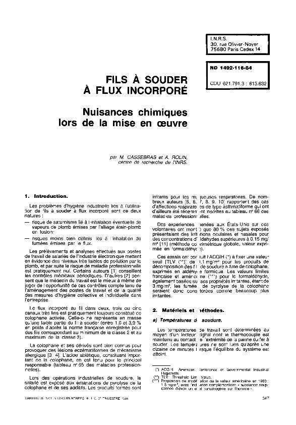 Fils à souder à flux incorporé : nuisances chimiques lors de la mise en oeuvre
