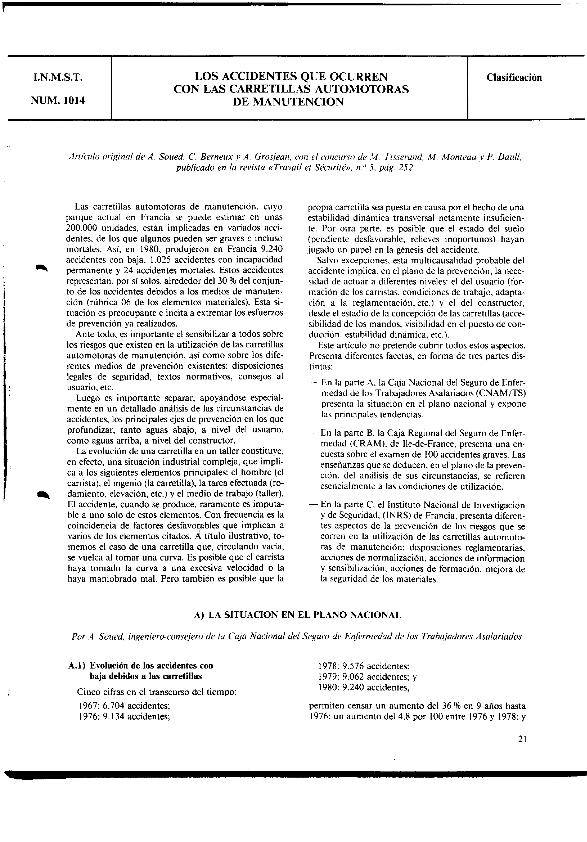 En: Notas y documentos sobre prevención de riesgos profesionales. - Madrid. - nº 162, Abril-Junio 1988 ; p. 21-27