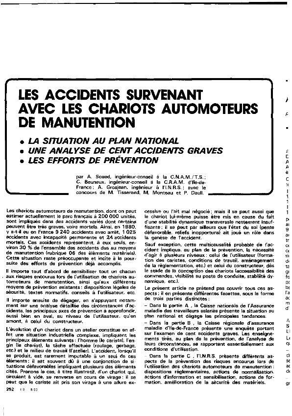 Les Accidents survenant avec les chariots automoteurs de manuntention