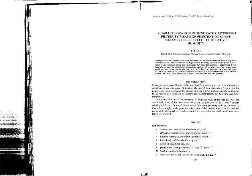 Characterization of respirator adsorbent filters by means of penetration curve parameters :...