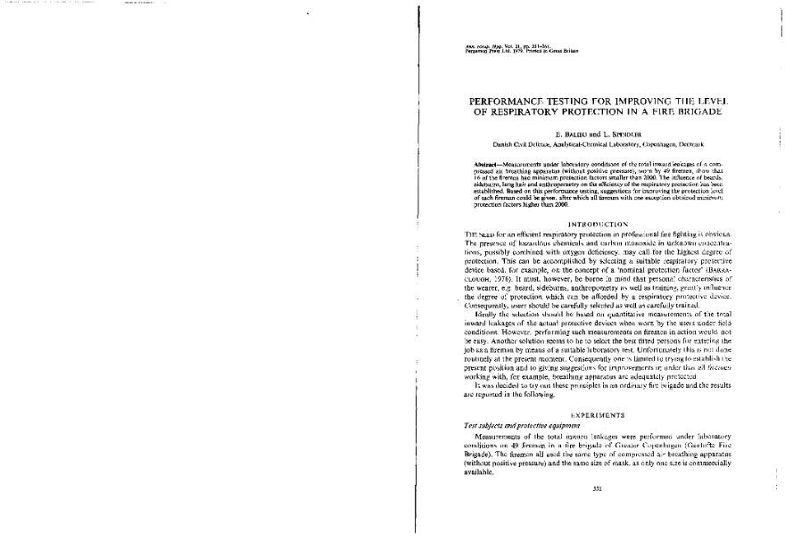 Performance testing for improving the level of respiratory protection in a fire brigade