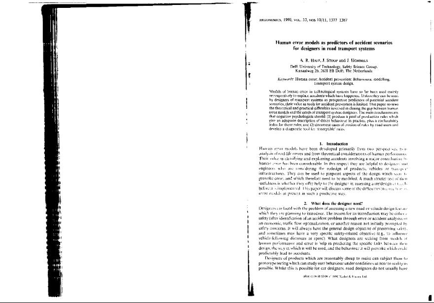 Human error models as predictors of accident scenarios for designers in road transport systems