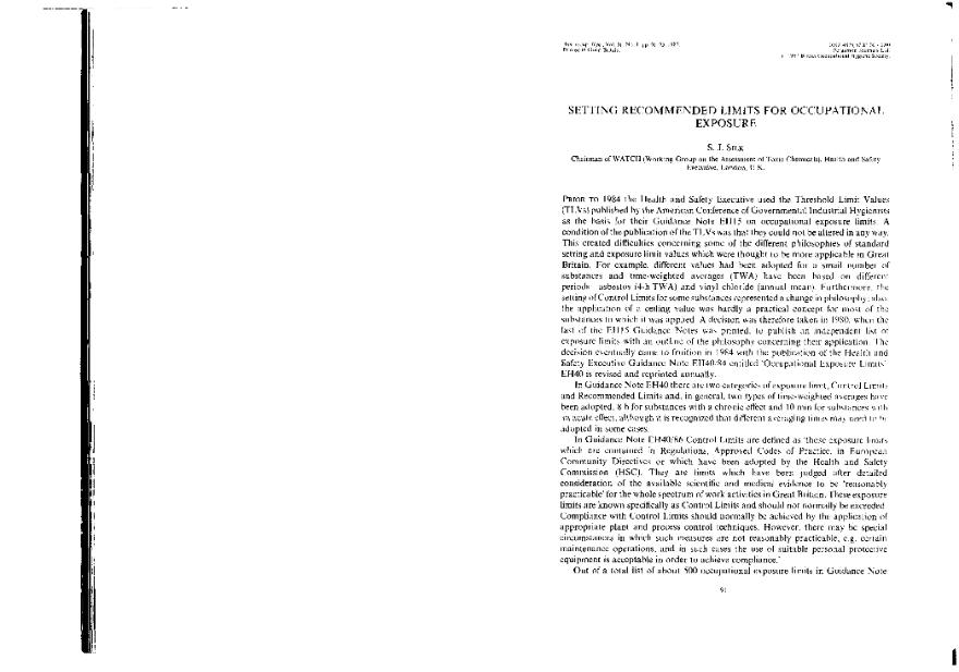 En: The Annals of occupational hygiene. - Oxford [etc.]. - nº 1, 1987 ; p. 91-93