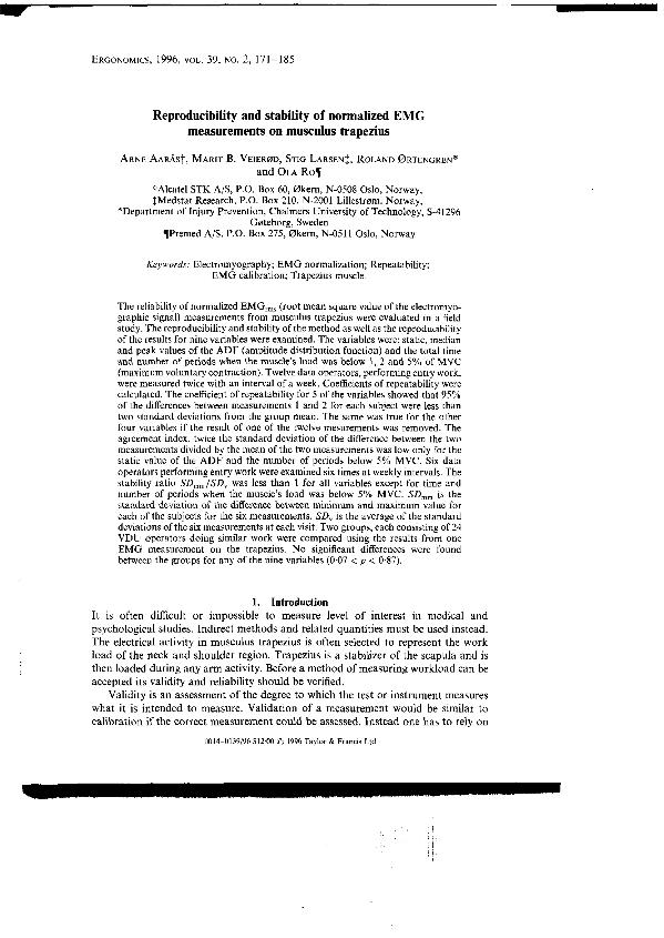 Reproducibility and stability of normalized EMG measurements on musculus trapezius